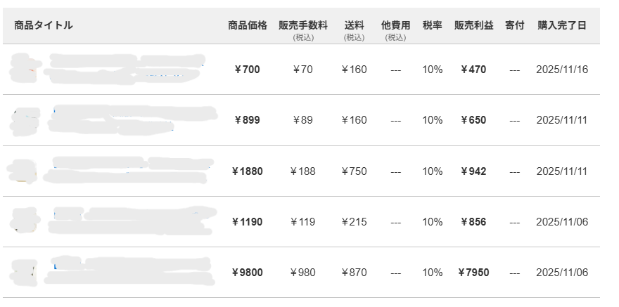 今回最近の、私の一部の売り上げ実績もお見せするので、出品の際は参考にしてください。